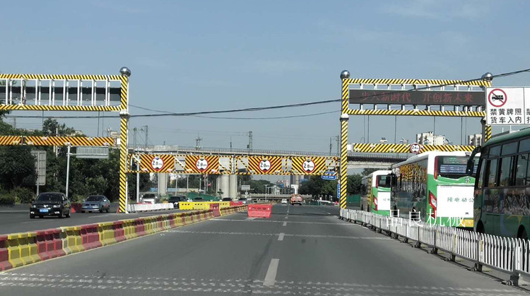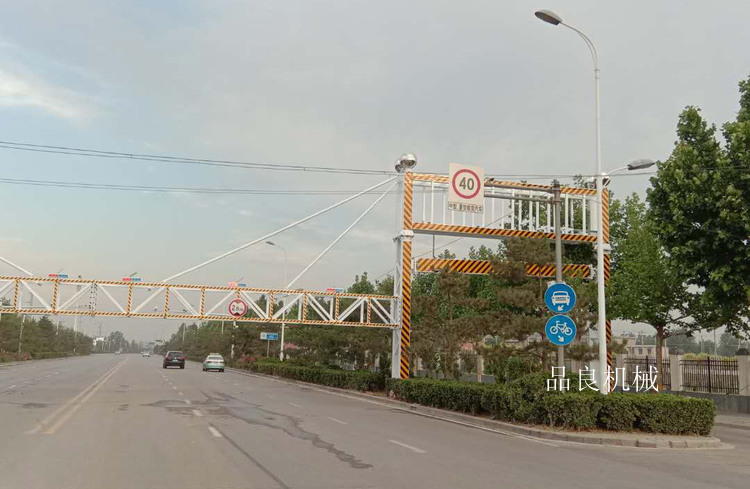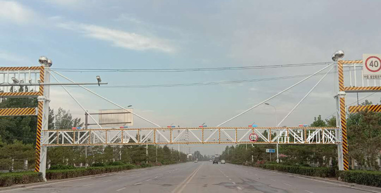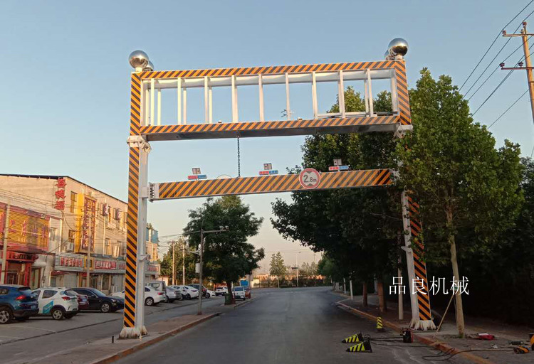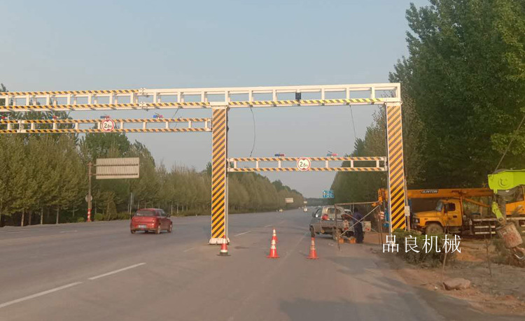 限高架是用于桥梁、涵洞、隧道入口处、城市部分道路入口处的门型构架,一般为钢结构焊接而成,起防护桥梁、涵洞、隧道、城市道路的作用。