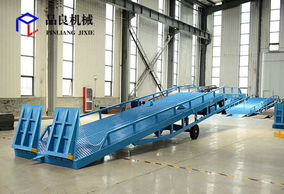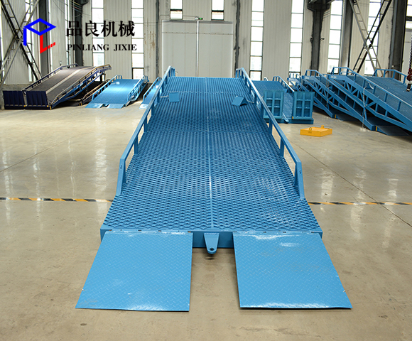 移动式登车桥是与叉车配合使用的货物装卸辅助设备,可根据汽车车厢的高低调节高度,叉车可以直接通过本设备驶入车厢内部进行货物的批量装卸,仅需单人作业,即可实现货物的快速装卸。它使企业减少大量劳力,提高工作效率,获取更大经济效益。